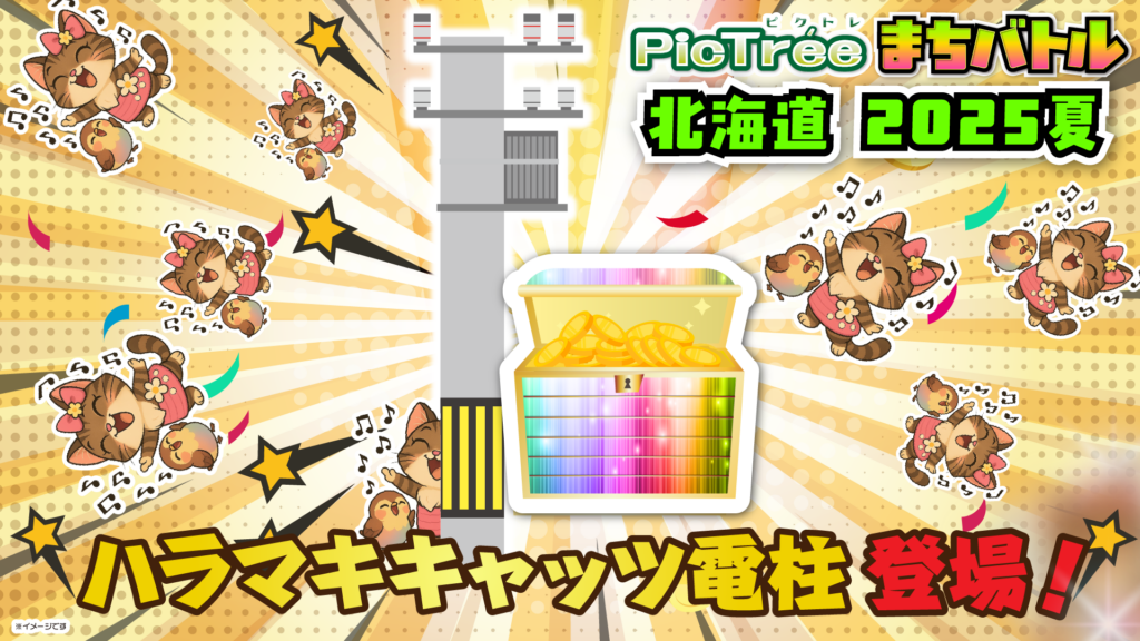 In the “PicTrée City Battle in Hokkaido – Summer 2025,” currently being held throughout Hokkaido, the very first “individually sponsored” Treasure Pole by a PicTrée user, Mr. BIPPO(@ciA8OvGmVW57391), will appear starting Tuesday, September 30: the “Haramaki Cats Pole.” Photographing the designated Pole will give you not only reward coins but also a chance to win original “Haramaki Cats” goods created by Mr. BIPPO!