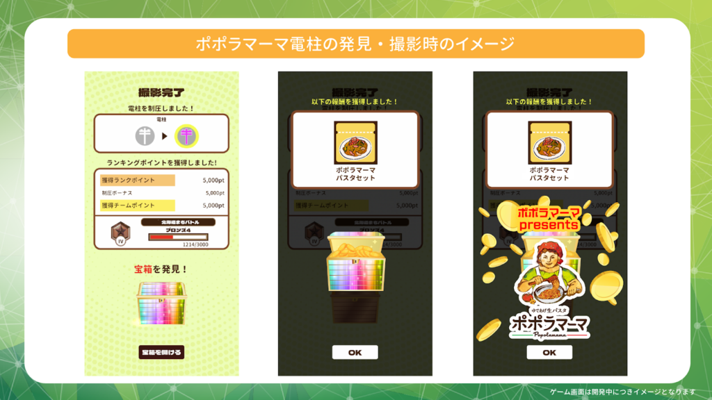 As a sponsored treasure Pole, the “Popolamama Pole” will appear. By finding and photographing the “Popolamama Pole,” you can win a pasta set.