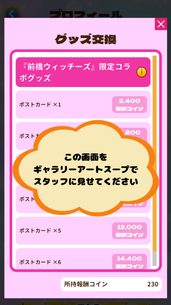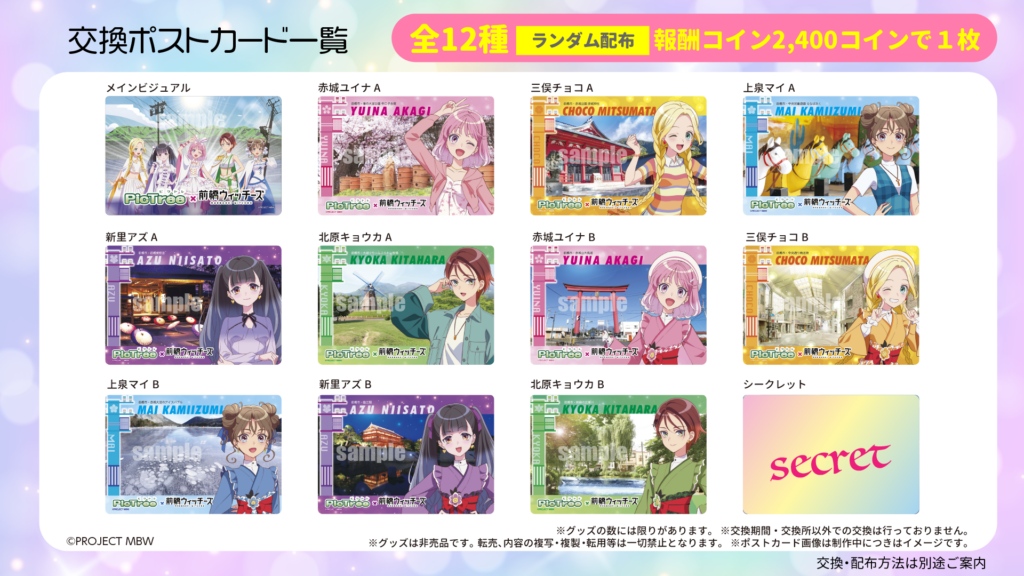 You can exchange the reward coins you earn in the game for limited postcards created in collaboration with “Maebashi Witches.”
