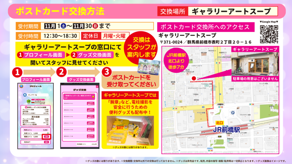 To exchange for a collaboration postcard, please visit “Gallery Artsoup” in Maebashi City.