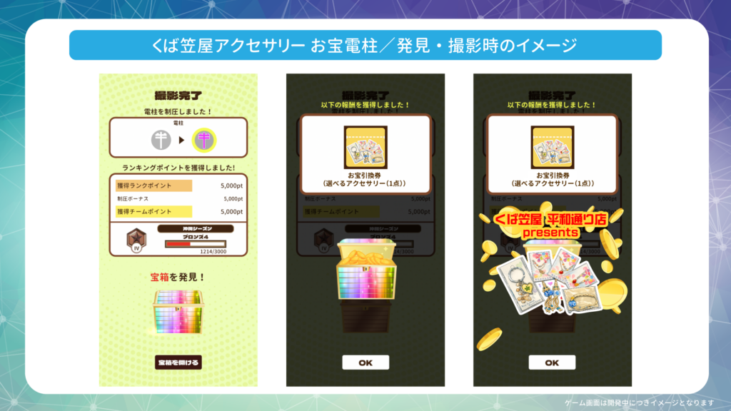Various Treasure Poles will be installed within the eligible areas. When you photograph an eligible pole, a Rainbow Treasure Box will appear, and Reward Coins or prize redemption tickets will be dispensed from the box.