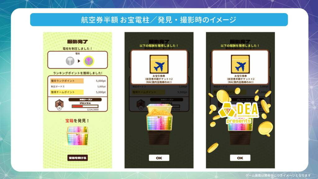 The “50% Off Airfare Poles” are special poles provided by Digital Entertainment Asset Co., Ltd., which operates the participatory social contribution game “PicTrée – Grid Grab: Capture the Current.” By finding and photographing the eligible Treasure Poles, you can obtain “50% Off Airfare Tickets ×2 (RAC domestic routes only).”