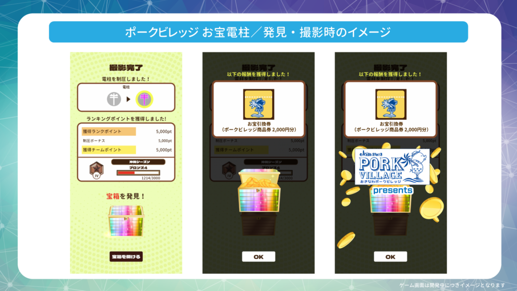 The “NTT WEST Poles” are special poles provided by NTT WEST Corporation, which hosts the Okinawa season. By finding and photographing the eligible Treasure Poles, you can obtain high-value Reward Coins.
