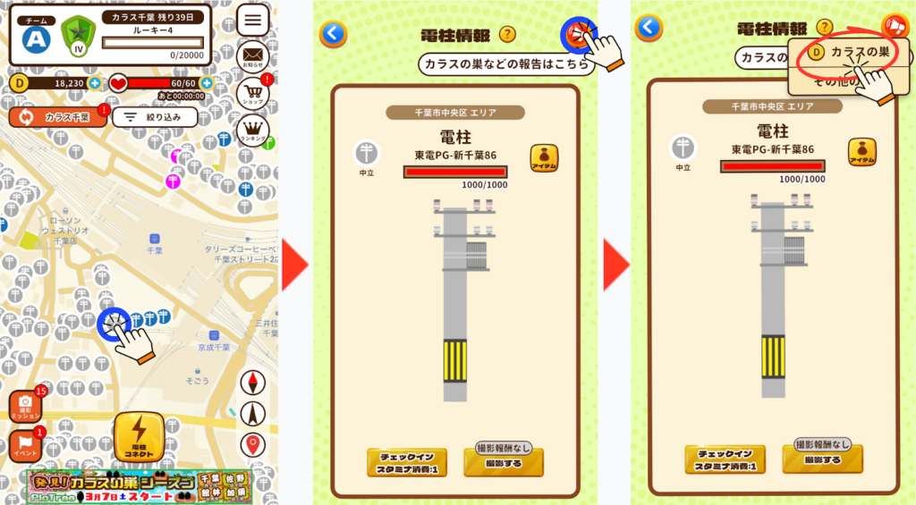 カラスの巣がある電柱を発見して報告することで「カラスの巣発見報酬」を獲得できます。